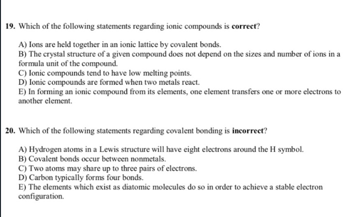 Solved 19 Which Of The Following Statements Regarding Ionic Chegg Com